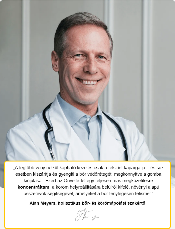 "A legtöbb vény nélkül kapható kezelés csak a felszínt érinti – és sok esetben kiszárítja és gyengíti a bőr védőrétegét, így megkönnyíti a gomba visszatérését. Ezért választottam egy teljesen más megközelítést az Voilaist esetében: a köröm helyreállítása belülről kifelé, olyan növényi alapú összetevőkkel, amelyeket a bőr valóban felismer." - Alan Meyers, holisztikus bőr- és körömápolási szakértő