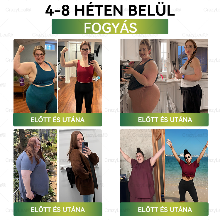 "A menopauza alatt több mint 24 kilót híztam, és a lábaimon súlyos narancsbőr és megereszkedett bőr jelent meg. Mindent kipróbáltam – krémeket, masszázst, még a műtét gondolata is megfordult a fejemben. Semmi sem használt. Ezután kezdtem el heti 3 alkalommal használni a CrazyLeaf® tapaszokat. 72 nap alatt 18 kilót fogytam, és a bőröm teljesen átalakult. A narancsbőr eltűnt, a lábaim újra simák és feszesek lettek. Végre fel tudok venni rövidnadrágot anélkül, hogy szégyenkeznék. Ez a tapasz visszaadta az önbizalmamat!"— Kiss Klaudia, Pécs