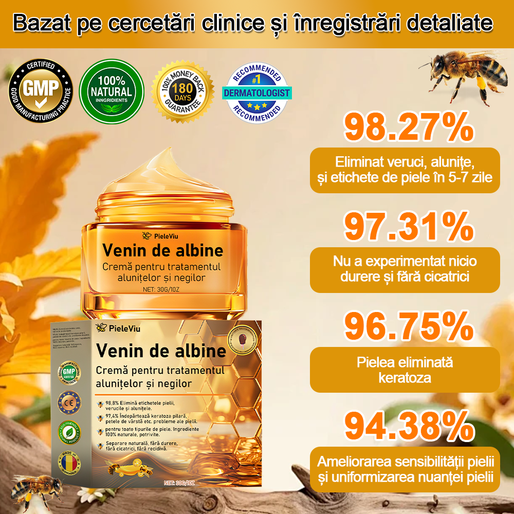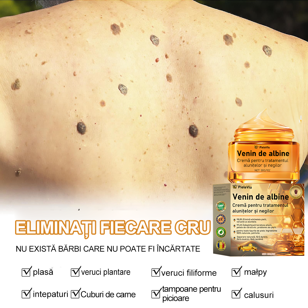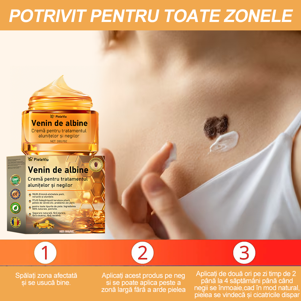 - PieleViu™ Venin de albine Cremă pentru tratamentul alunitelor şi negilor (1/2/4/6/10 cutii)